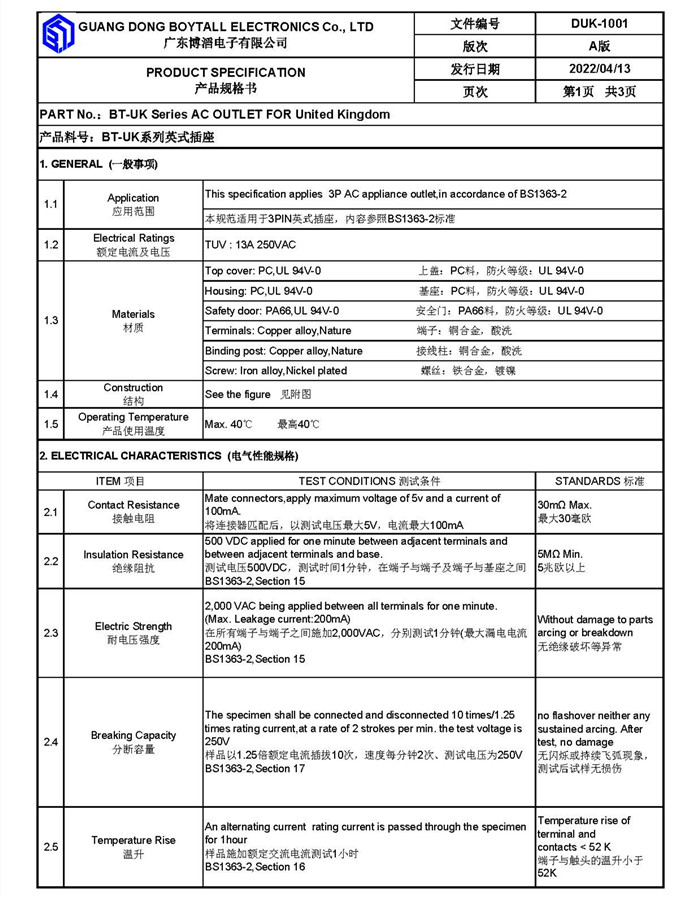 英規插(chā)座係列